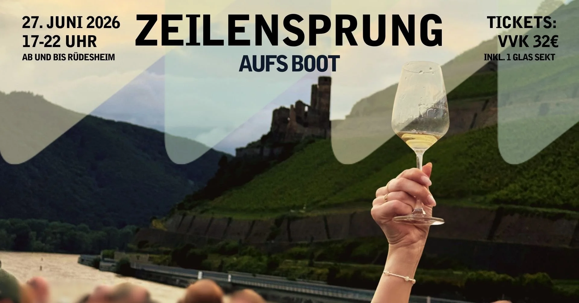 An diesem Tag wollen wir gemeinsam mit Euch auf der MS RheinStar den Rhein entlang schippern und feiern. Das Achterdeck wird zur Weinbar und bei Musik von unserem DJ und noch mehr Wein, kann gequatscht, getanzt und gefachsimpelt werden. Boarding startet wie immer um 16:30 Uhr an der Brücke 12 in Rüdesheim.